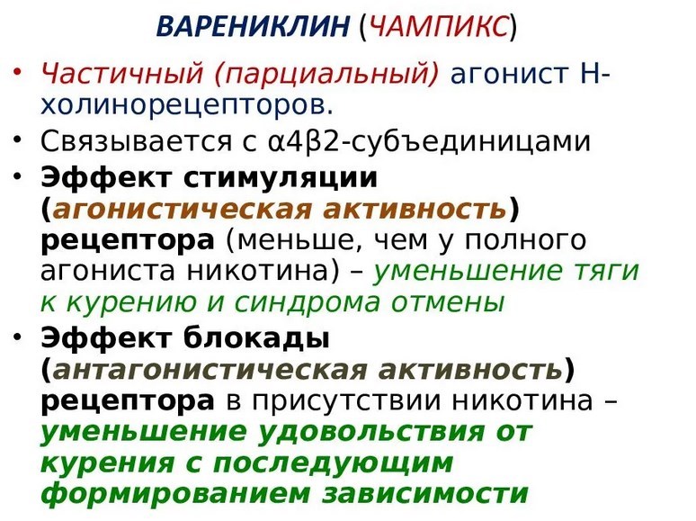 Это единственное лекарственное средство, которое постепенно снижает уровень удовольствия, получаемого от курения, что значительно облегчает отказ от табака.