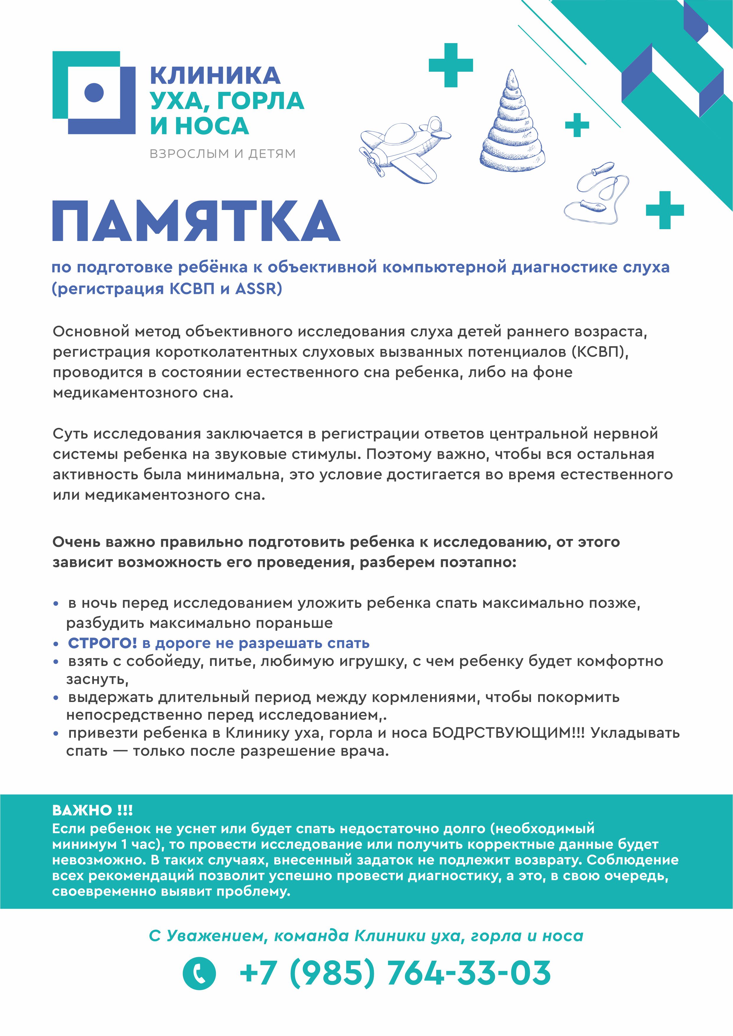 Памятка по подготовке ребёнка к объективной компьютерной диагностике слуха (регистрация КСВП и/или ASSR)